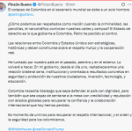 Luego de este nuevo diferendo entre ambos mandatarios, el Ministro de Defensa de Colombia, pedro sánchez Suárez, se pronunció y afirmó “Es una falta de respeto a Colombia”