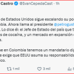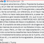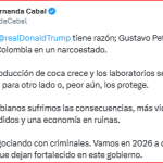 Al final del mensaje escribió “Aconsejo a Trump que lea atentamente a Colombia y determine dónde están los narcotraficantes y dónde están los demócratas”.