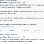 “Funcionarios del gobierno estadounidense han cometido asesinatos y violado nuestra soberanía en aguas territoriales”, dijo Petro.